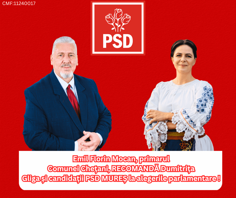 Doamna Dumitrița Gliga, președintele PSD Mureș, a demonstrat, prin fiecare acțiune a sa, că este un lider dedicat și o prietenă adevărată a comunei noastre. A vizitat comuna Chețani în numeroase rânduri, a discutat cu oamenii despre nevoile și aspirațiile lor și a sprijinit din plin măsurile de dezvoltare inițiate de Primăria Comunei Chețani. Implicarea sa constantă și devotamentul față de comunitățile locale sunt dovezi clare ale unui lider care înțelege și iubește oamenii.