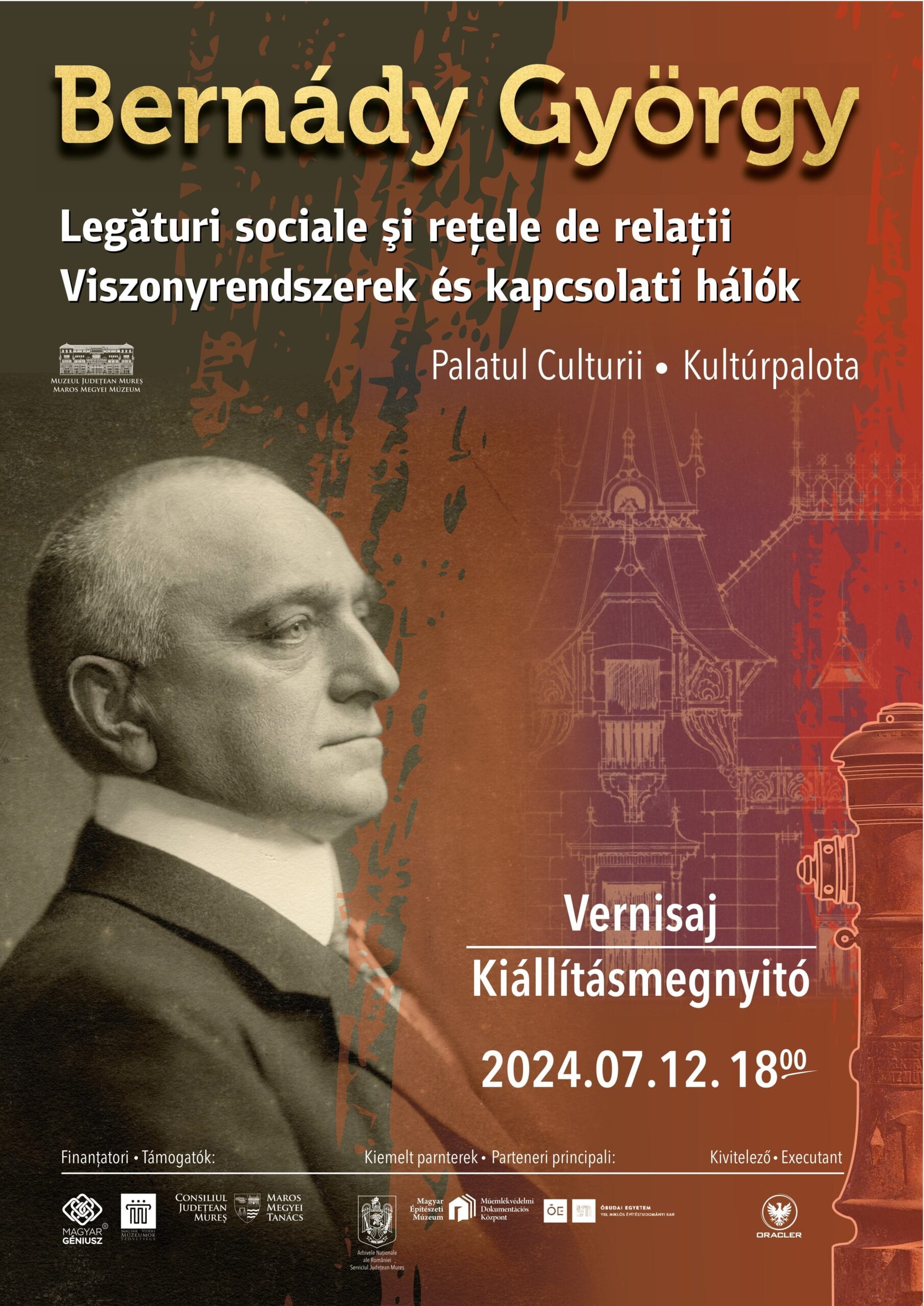 Muzeul Județean Mureș – Secția de Istorie are deosebita plăcere de a vă invita la vernisajul expoziției „Bernády György. Legături sociale și rețele de relații”, care va avea loc vineri, 12 iulie 2024, începând cu ora 18.00, la Palatul Culturii din Târgu Mureș, și care explorează în profunzime personalitatea și realizările impresionante ale primarului Bernády György.