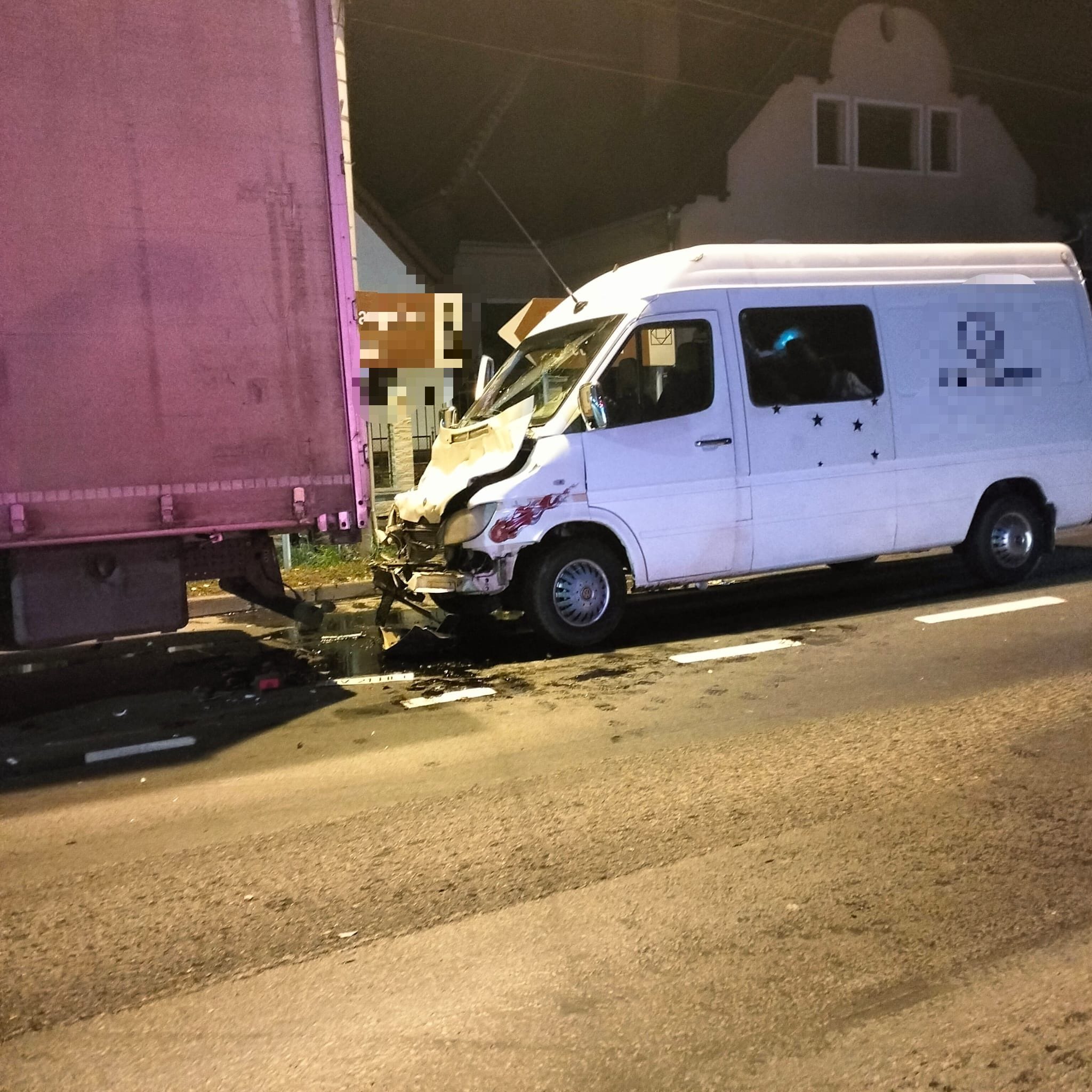 La fața locului, pompierii au constatat faptul că, în accident au fost implicate un microbuz și un autocamion, în care se aflau în total, 9 persoane.