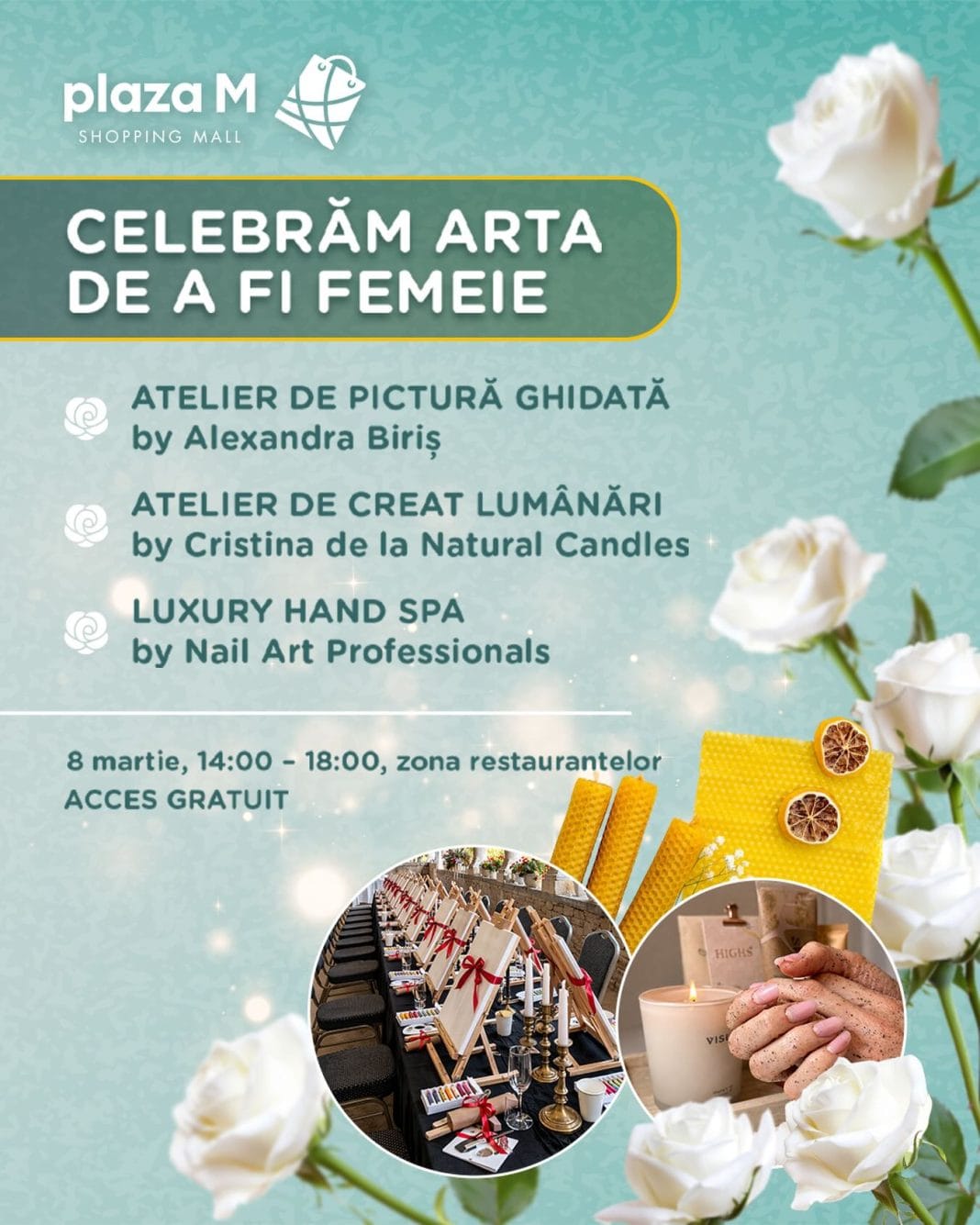 Evenimentul va avea loc în data de 8 martie, între orele 14:00 și 18:00, în zona restaurantelor din Plaza M, iar accesul este gratuit pentru toate participantele.