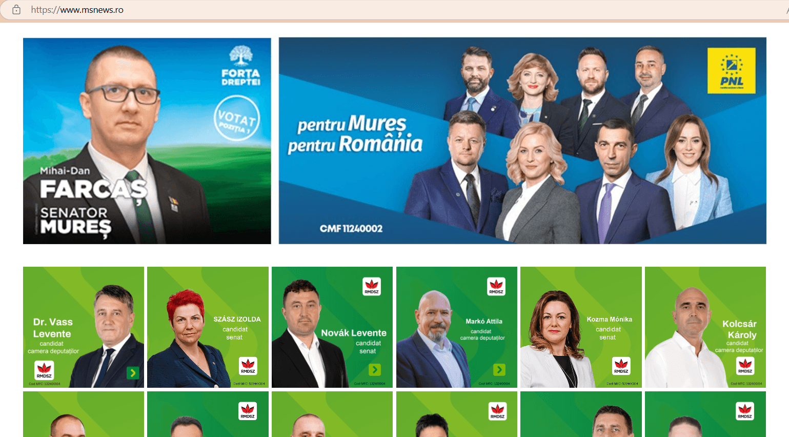 După cum puteți vedea în fotografia articolului, care este un screenshot de pe site-ul lor, msnews.ro fac campanie electorală CONTINUĂ atât pentru Forța Dreptei, cât și pentru UDMR.