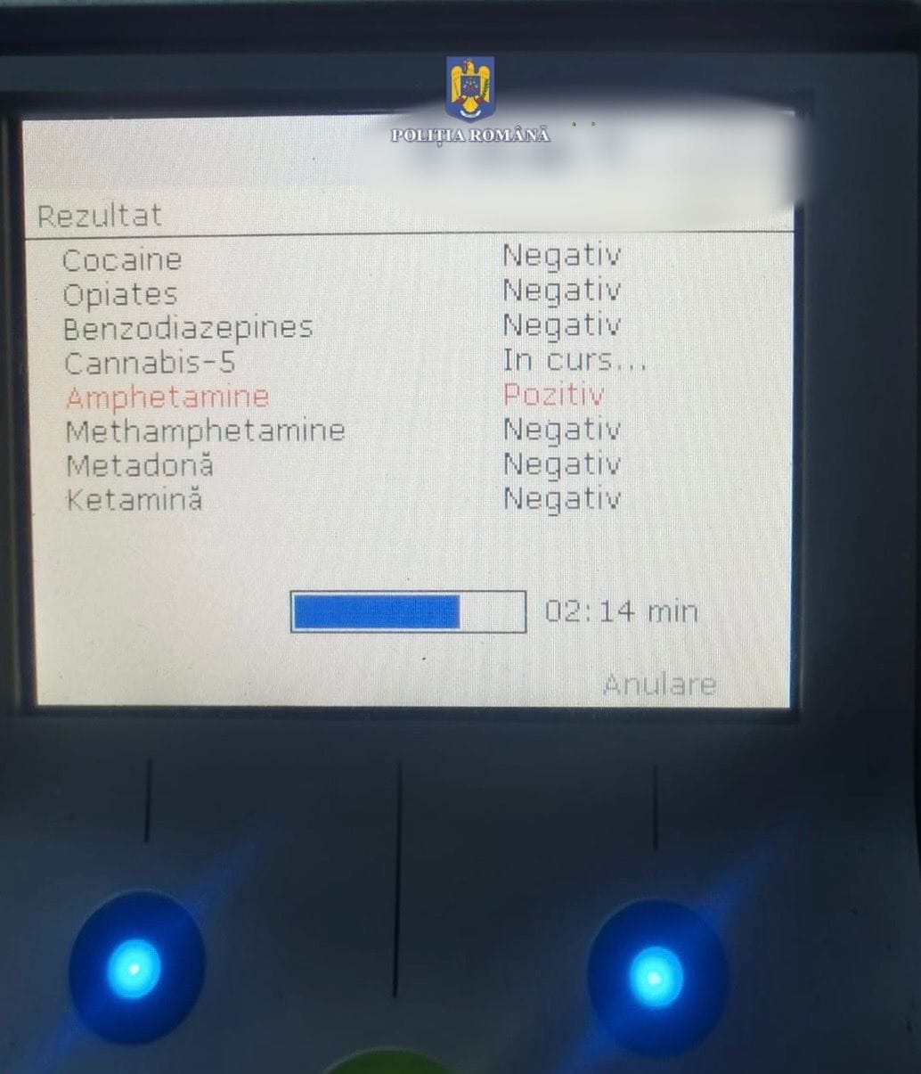 Conducătorul a fost testat cu aparatul Drugtest, care a indicat o valoare pozitivă pentru cannabis.