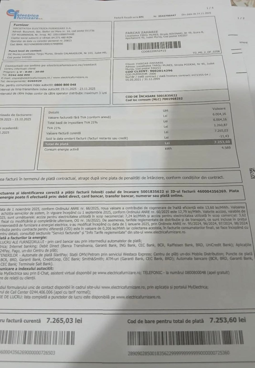 Pe retelele de socializare a fost publicata o factura – record pentru electricitate.
