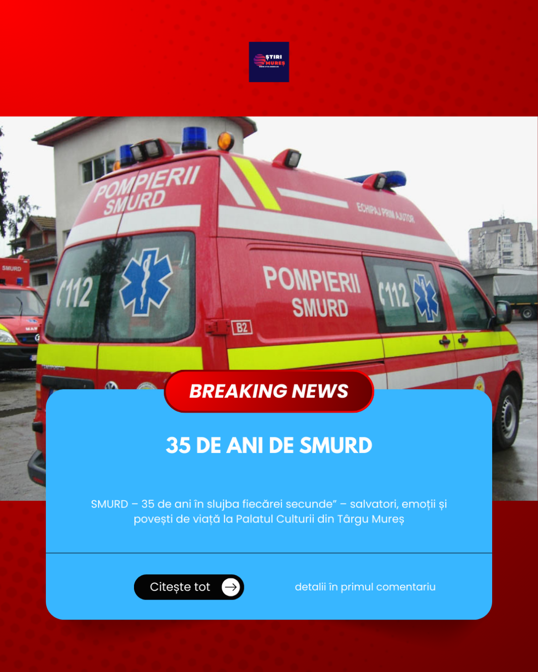 Serviciul Mobil de Urgență, Reanimare și Descarcerare (SMURD) marchează în 2025 un moment istoric: 35 de ani de activitate neîntreruptă în slujba vieții. Evenimentul aniversar va avea loc la Palatul Culturii din Târgu Mureș, pe 27 septembrie, începând cu ora 16:00, sub sloganul emoționant „SMURD – 35 de ani în slujba fiecărei secunde”.