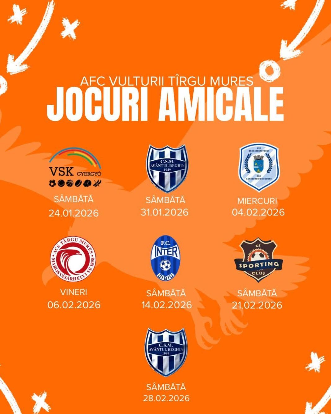 AFC Vulturii Tîrgu Mureș a dat startul perioadei de pregătire pentru noua parte a sezonului, odată cu reunirea lotului de seniori. Urmează săptămâni intense de muncă, în care accentul va fi pus pe pregătirea fizică, omogenizarea echipei și implementarea principiilor de joc, astfel încât formația mureșeană să abordeze competițiile oficiale la un nivel cât mai ridicat.