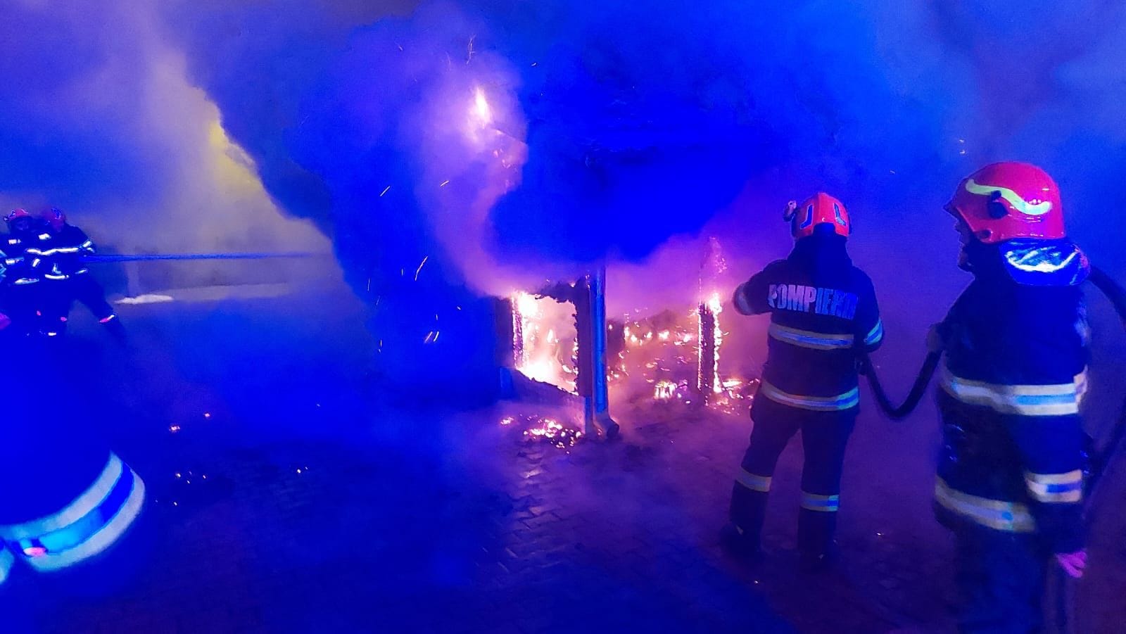 Incendiul se manifestă pe o suprafață de circa 100 mp la casa de locuit, în aceste momente fiind localizat.