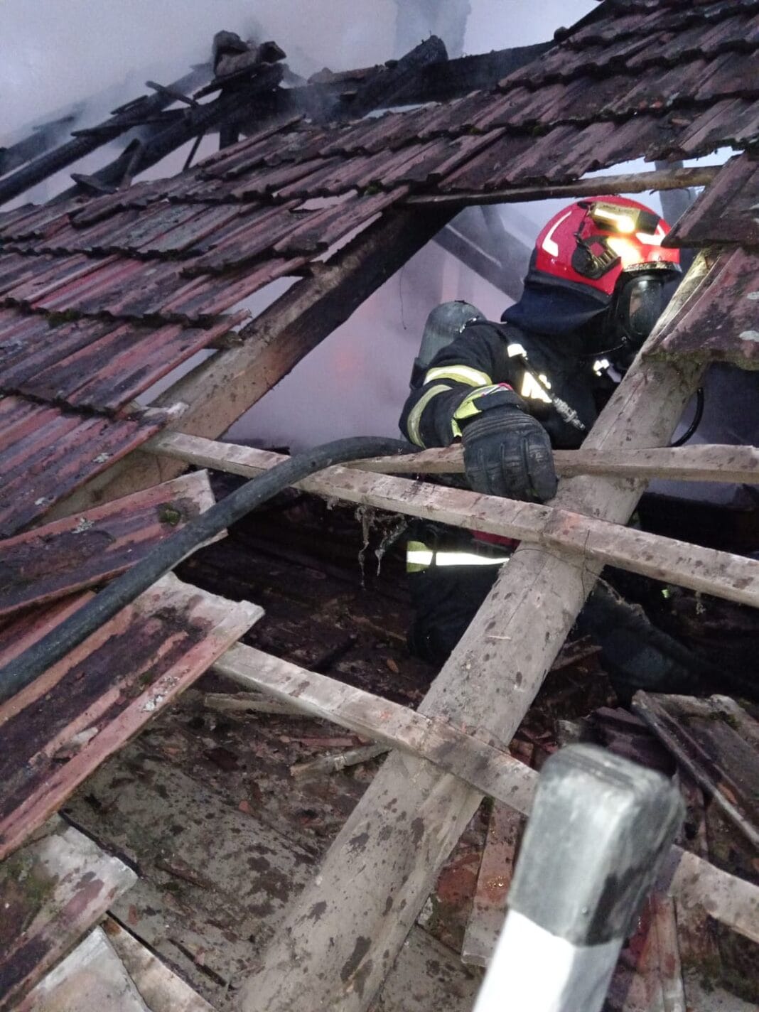 Pompierii militari din cadrul Detașamentului de Pompieri Reghin intervin în aceste momente pentru stingerea unui incendiu izbucnit la o casă de locuit din localitatea Tonciu.